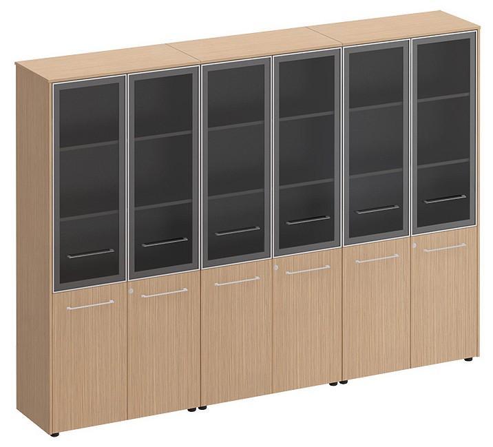 Шкаф книжный является стенкой, состоящей из трех шкафов со стеклом для документов под общим топом.