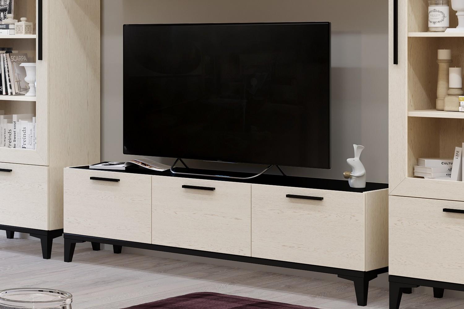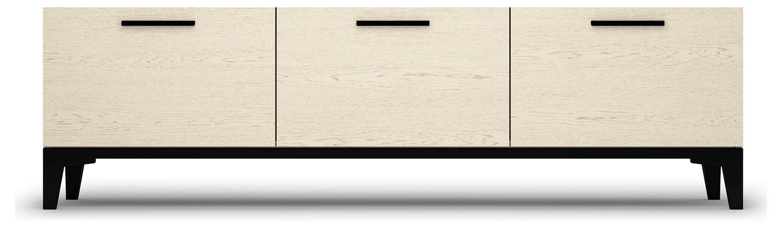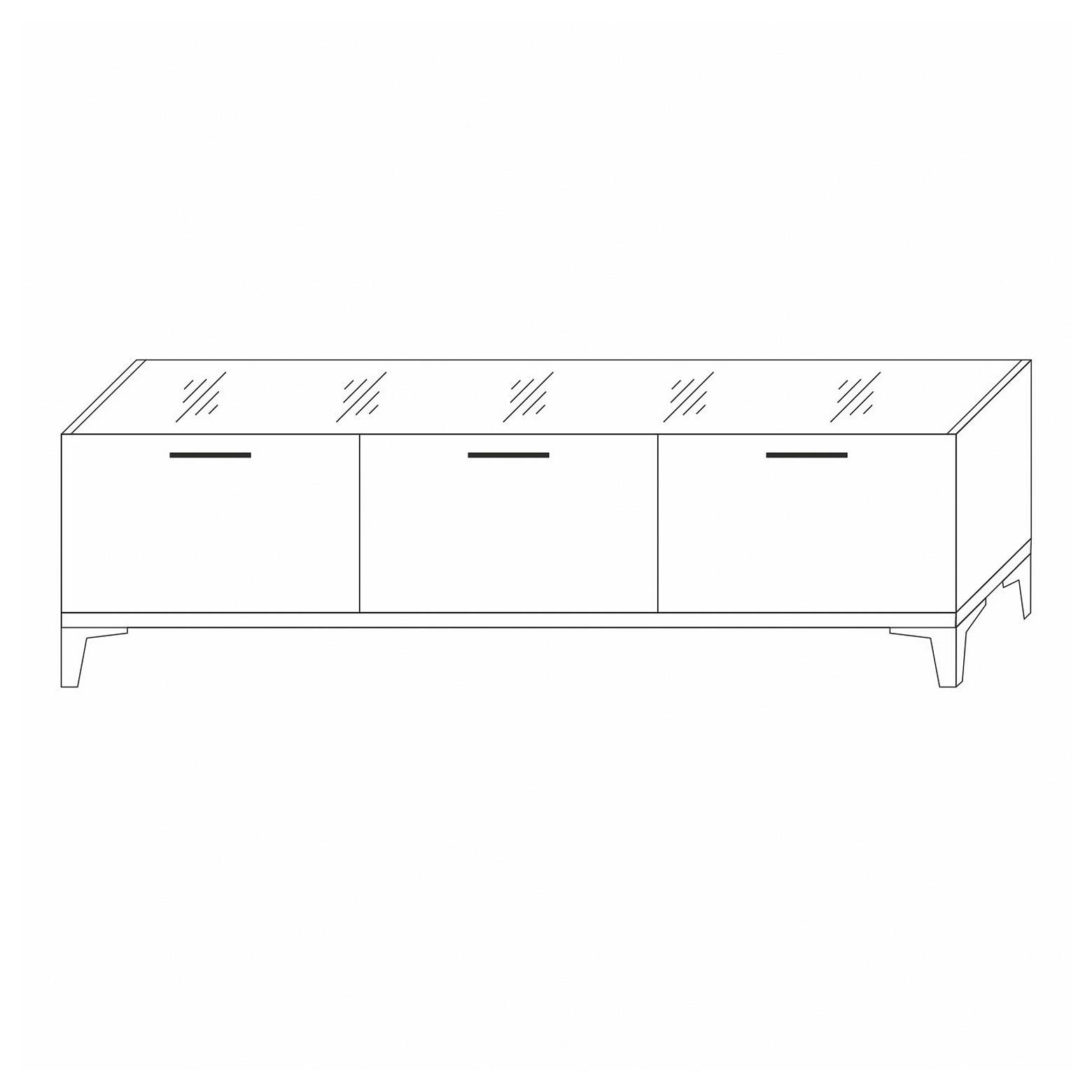В конструкции тумбы 3 ниши для хранения всевозможных вещей и аппаратуры, а габариты изделия удобны для размещения телевизора с большой диагональю. Дверцы открываются при помощи надежных газлифтов.