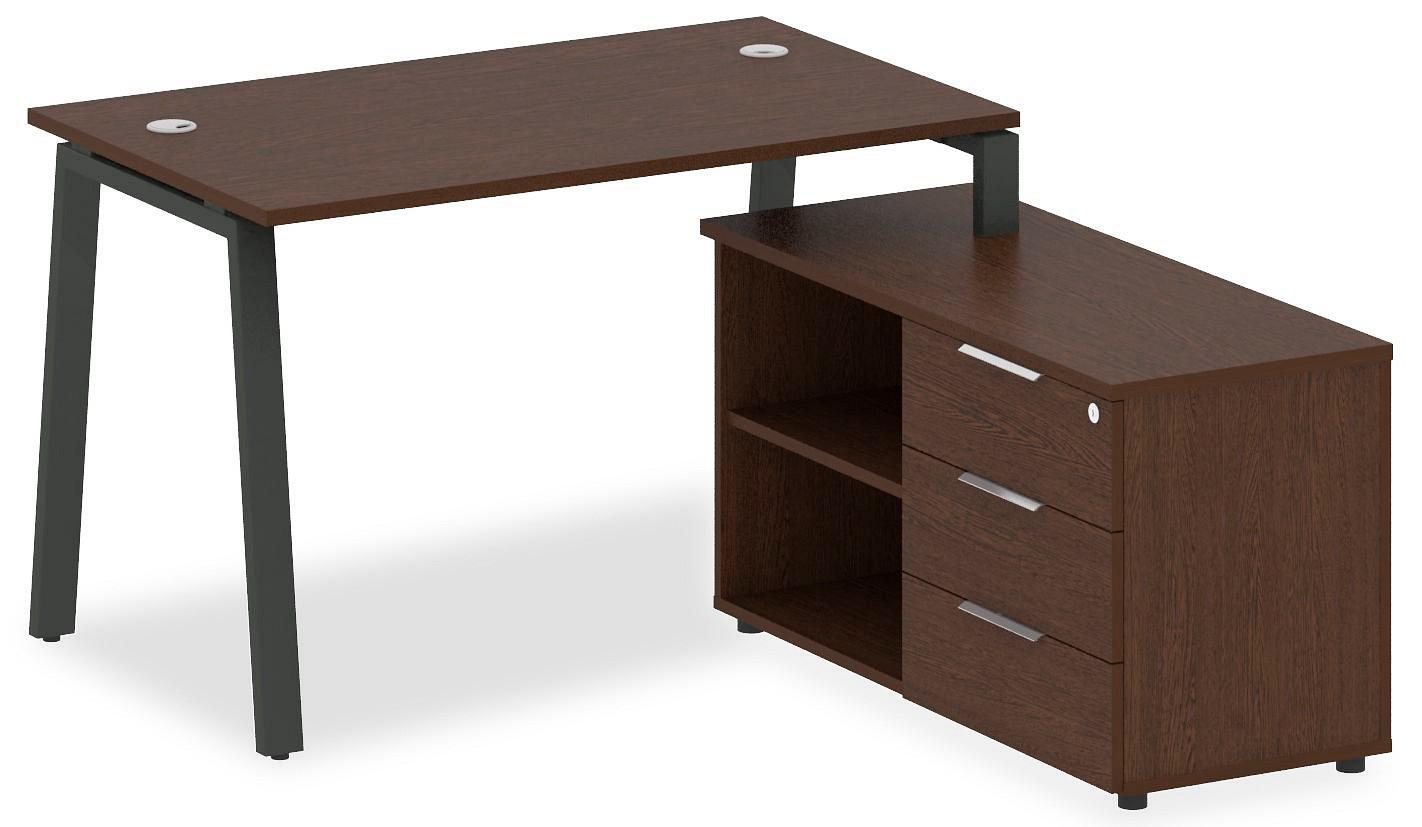 • 3 ящика. Для изготовления корпуса был выбран ЛДСП Е1, металл в оттенке антрацит, венге, завершает дизайн матовый верхний слой, гармонично сочетающийся со столешницей. Приобрести данную модель вы можете по привлекательной цене, равной 31613 руб.