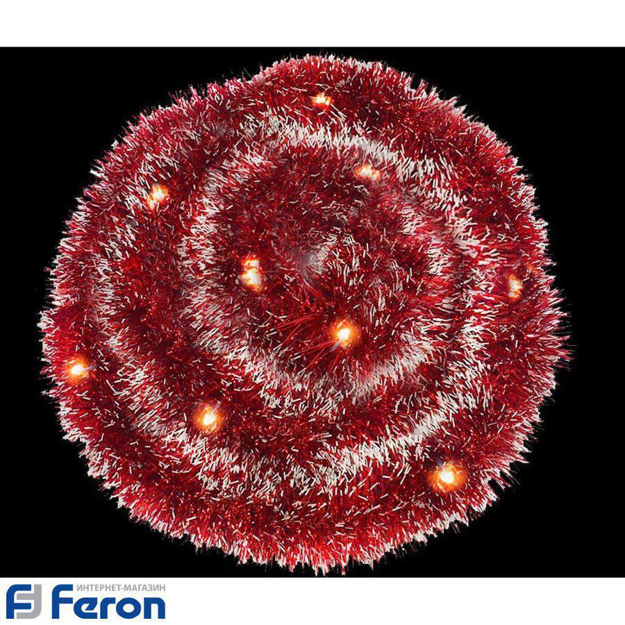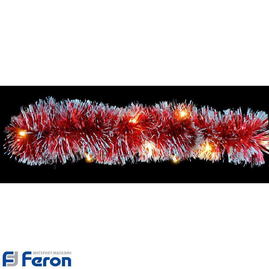 Гирлянда светодиодная мишура на батарейках "красный с белым", cl800