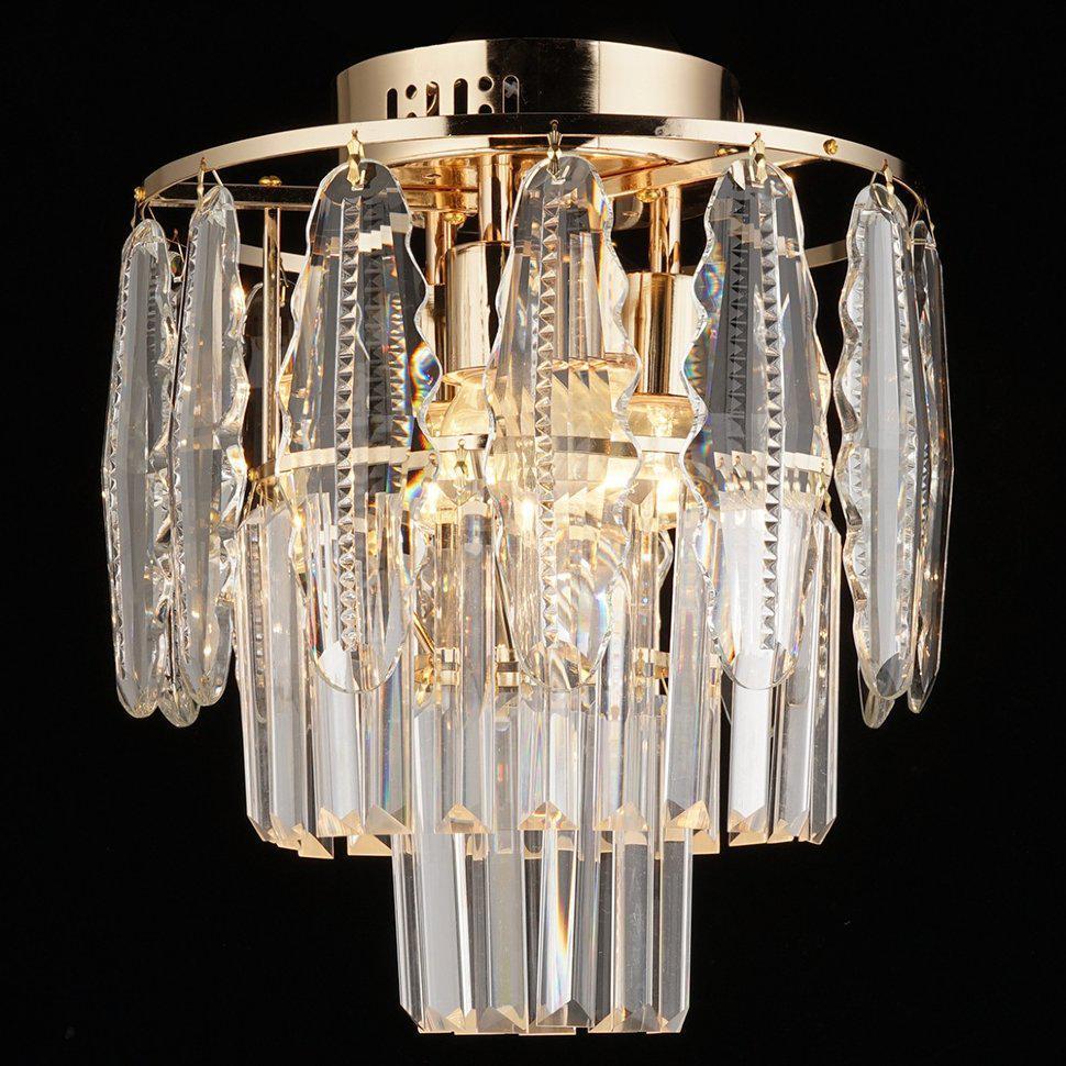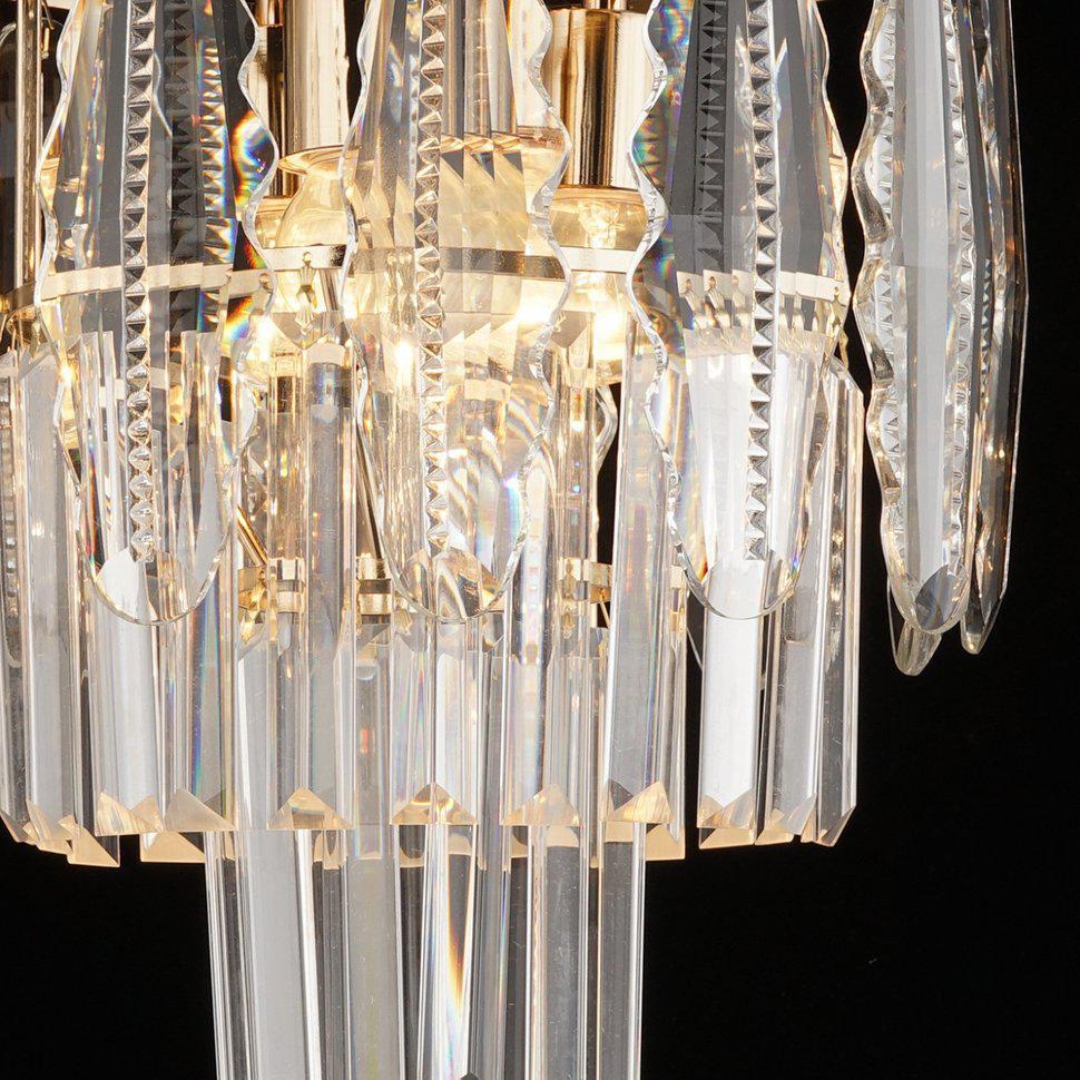 ЭЛЛЕН. Золотистое основание "ЭЛЛЕН" идеально сочетается с хрустальными элементами, свисающими с основания, как сосульки морозным зимним утром. Они пропускают через себя теплый свет ламп и собирают в себе разнообразные оттенки.