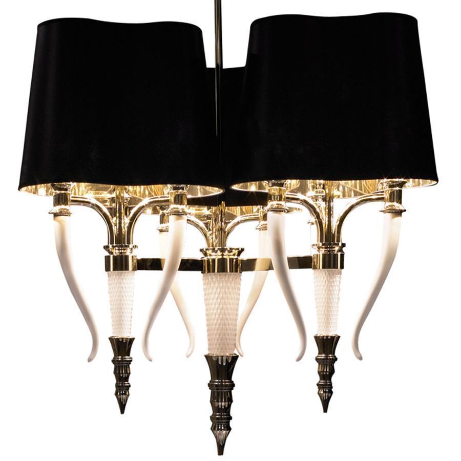 Данная модель входит в состав коллекции Esmeralda и исполнена в стиле модерн. Люстра имеет высоту 620-1820 мм и диаметр 900 мм. Работает при напряжении 220-240 V.