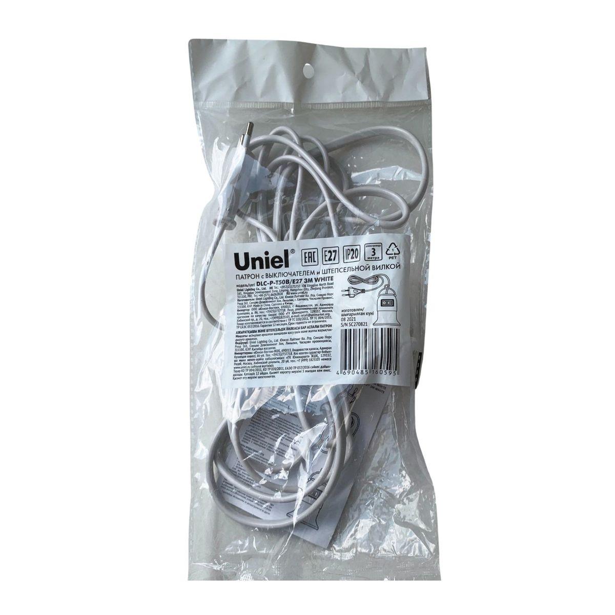 Патрон подвесной с выключателем и штепсельной вилкой Uniel DLC-P-T50B/E27 3M White UL-00009249