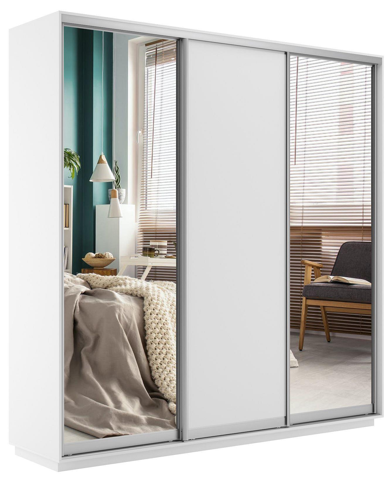 Шкафы-купе 3-х дверный Экспресс Медиум трио белый снег, зеркальный
