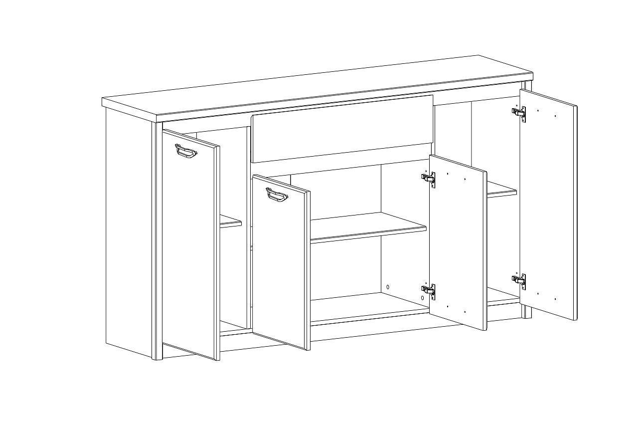 Компоненты, входящие в комплект 1 ящик,3 полки,4 дверцы